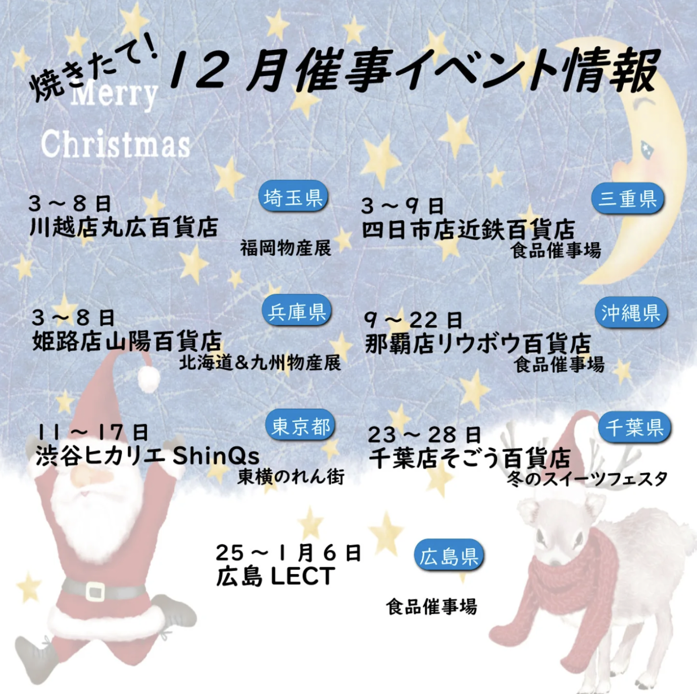 新着情報 12月の催事情報 投稿日: 2025年12月9日2025年12月9日 osp-kanrigamen 12月も絶賛、催事開催中です! 百貨店などでの出品商品やフレーバーにつきましては、 それぞれの百貨店などにお問合せください。 お近くの催事場で出店の際は、是非遊びにお越しくださいませ♪